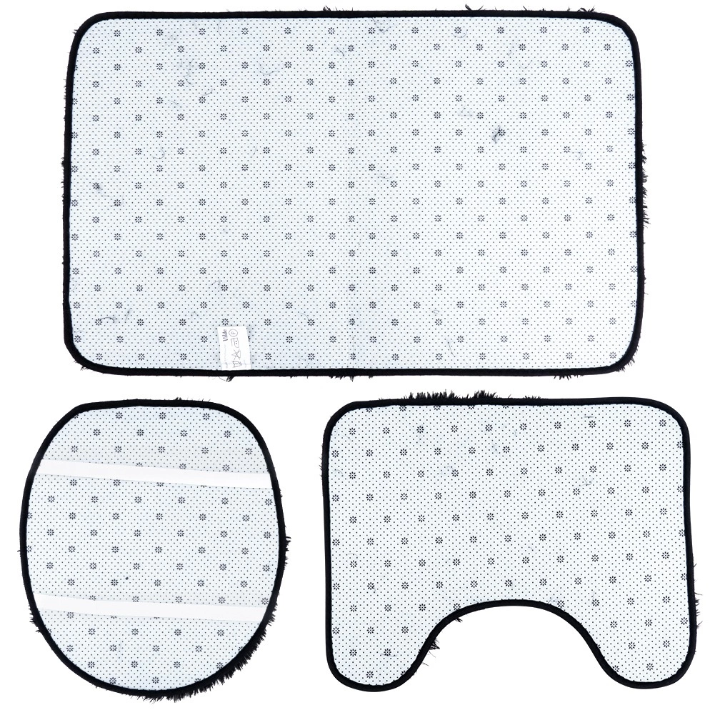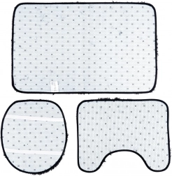 Obdĺžniková predložka k vani/sprche, U‑predložka k WC a poťah na veko toalety s gumičkami pre stabilné uchytenie.
