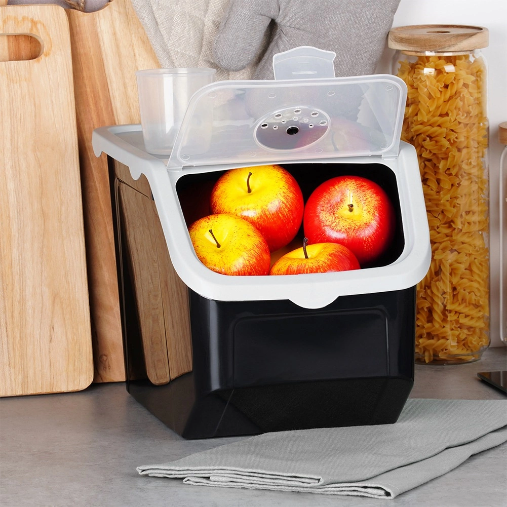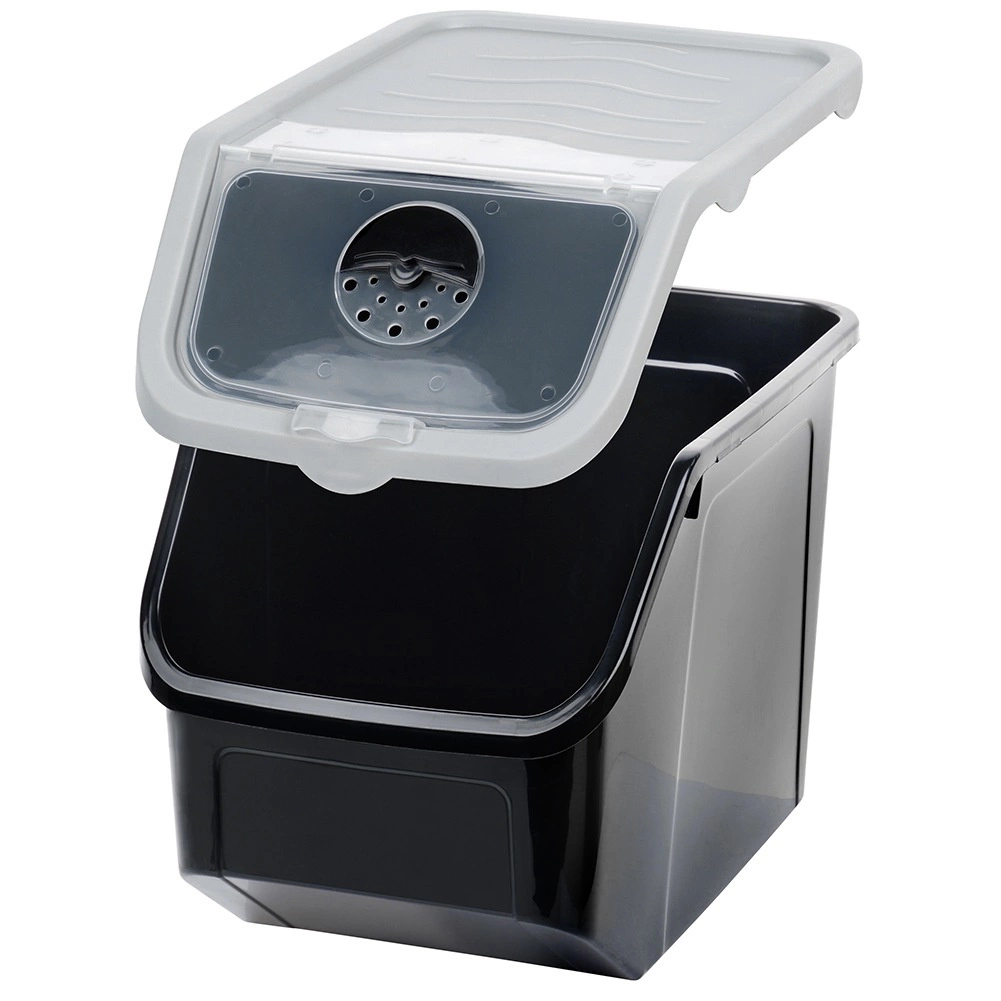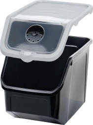 Udržte kuchynský poriadok a čerstvosť potravín s priestranným boxom s objemom 12 l. Vďaka výklopnému priehľadnému veku pohodlne skontrolujete obsah a ľahko nasypete či odoberiete potrebné množstvo. Regulovateľné vetracie otvory pomáhajú udržať správnu cirkuláciu vzduchu, aby si ovocie a zelenina dlhšie zachovali čerstvosť.