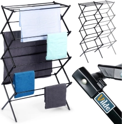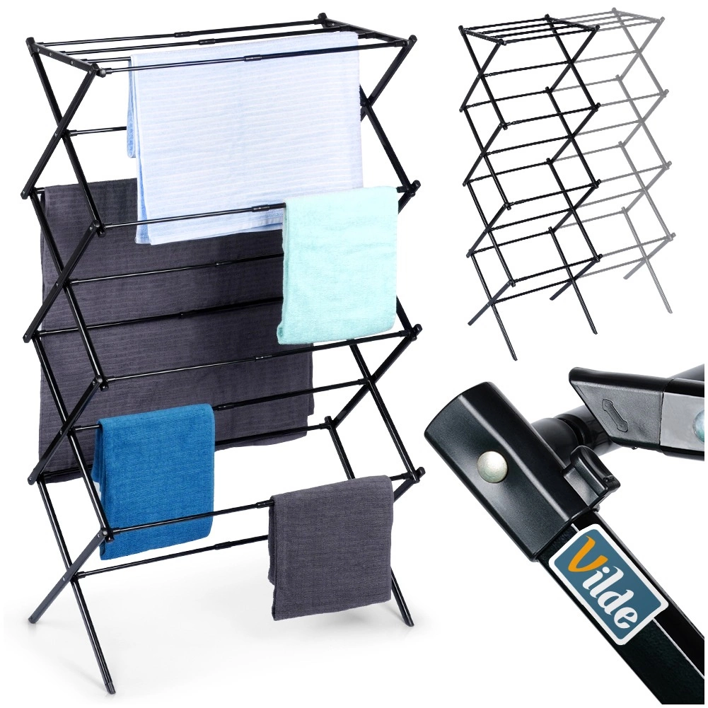 Praktický vertikálny sušiak na prádlo VILDE je ideálnou voľbou do menších bytov aj rodinných domov. Vďaka teleskopickej šírke 43–75 cm ľahko prispôsobíte veľkosť priestoru aj množstvo prádla. Robustná kovová konštrukcia s čiernou práškovou povrchovou úpravou zaručuje dlhú životnosť a moderný vzhľad.