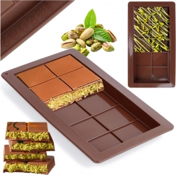 Táto kvalitná silikónová forma vám umožní pripraviť dokonale tvarované tabuľky čokolády – od klasickej mliečnej až po varianty s orieškami, sušeným ovocím či korením. Flexibilný a nepriľnavý silikón zaistí čisté tvary a bezproblémové vyklopenie bez nutnosti vymazávania.