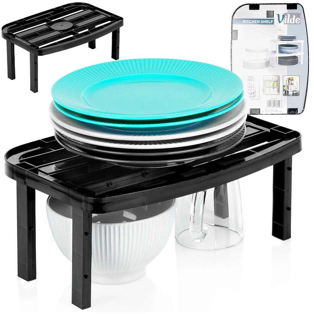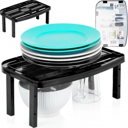 Praktická kuchynská polica v elegantnej čiernej farbe pomáha maximalizovať úložný priestor v skrinkách aj na pracovnej doske. Vďaka vymeniteľným nožičkám v dvoch dĺžkach ľahko nastavíte výšku 14,5 cm alebo 11,5 cm. Ideálna na triedenie tanierov, hrnčekov, koreničiek a dóz, stabilná a odolná konštrukcia umožňuje aj stohovanie viacerých políc pre ešte lepšiu organizáciu.