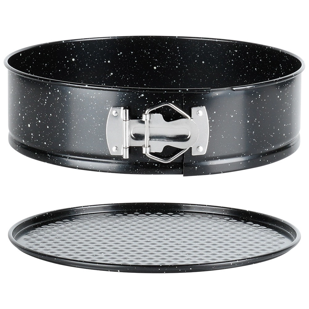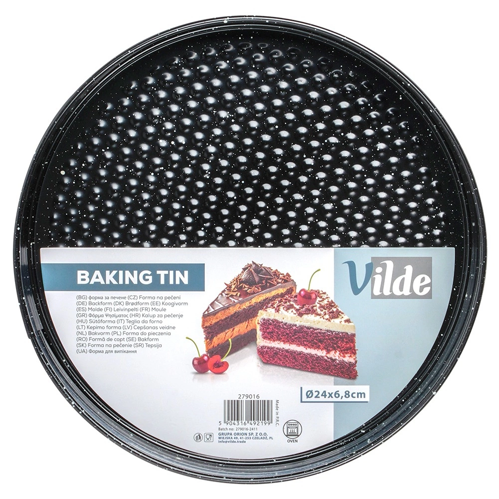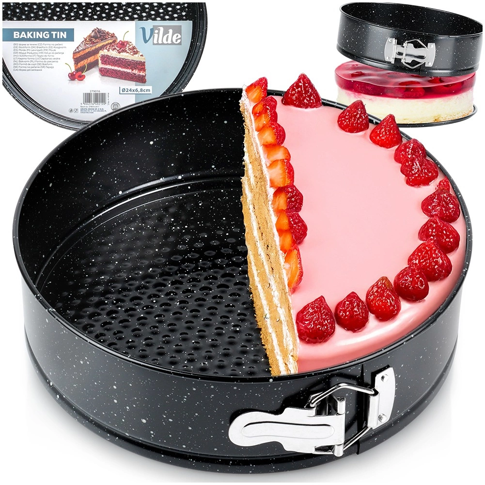 Praktická okrúhla tortová forma s priemerom 24 cm z odolnej uhlíkovej ocele s nepriľnavou granitovou povrchovou úpravou. Vďaka rozkladacím bokom a vyberateľnému dnu ľahko vyberiete tortu či cheesecake bez poškodenia. Materiál zabezpečuje rovnomerné pečenie až do 230 °C a jednoduché čistenie. Ideálna na každodenné pečenie tort, korpusov, cheesecakov aj zapekaných dezertov.