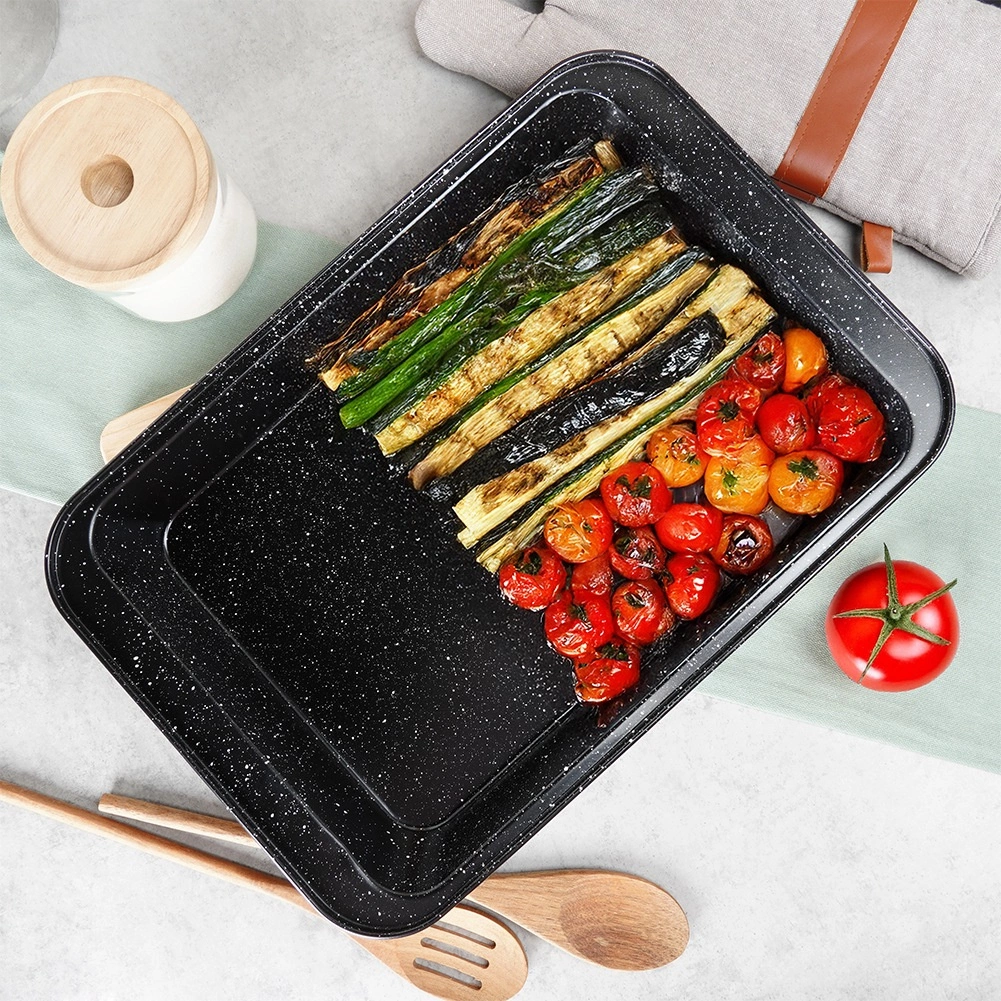 Univerzálny pekáč s granitovým nepriľnavým povrchom na pečenie mäsa, zeleniny, koláčov aj domácej pizze. Vďaka rovnomernému rozvodu tepla, vysokým okrajom a ľahkému čisteniu je ideálnou voľbou na každodenné pečenie v plynovej aj elektrickej rúre.