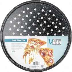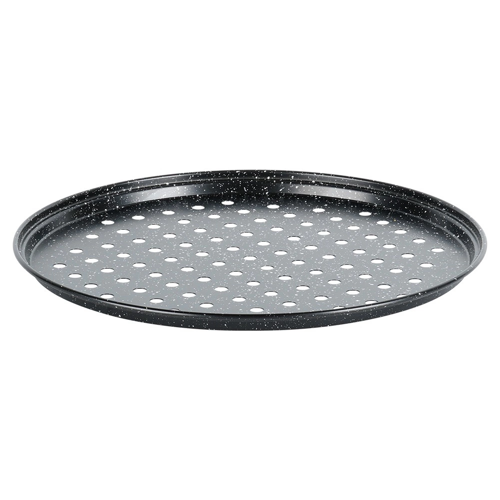 Okrúhla pizza forma s priemerom 28 cm s perforovaným dnom pre chrumkavé cesto, vyrobená z uhlíkovej ocele s granitovou nepriľnavou vrstvou. Odolá teplotám až 230 °C, má vyšší okraj pre jednoduchšiu manipuláciu a krásny tvar pizze. Vhodná do plynových aj elektrických rúr.