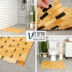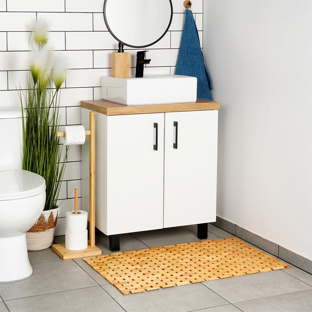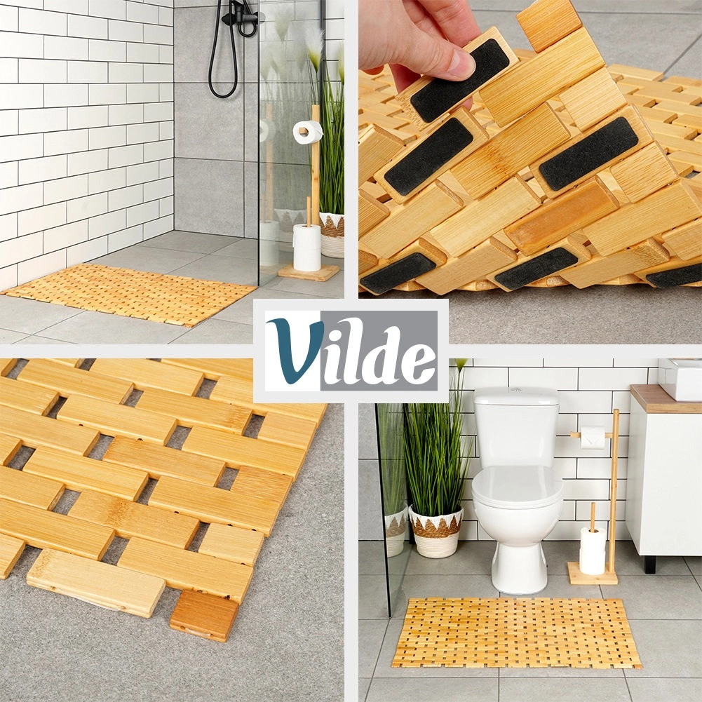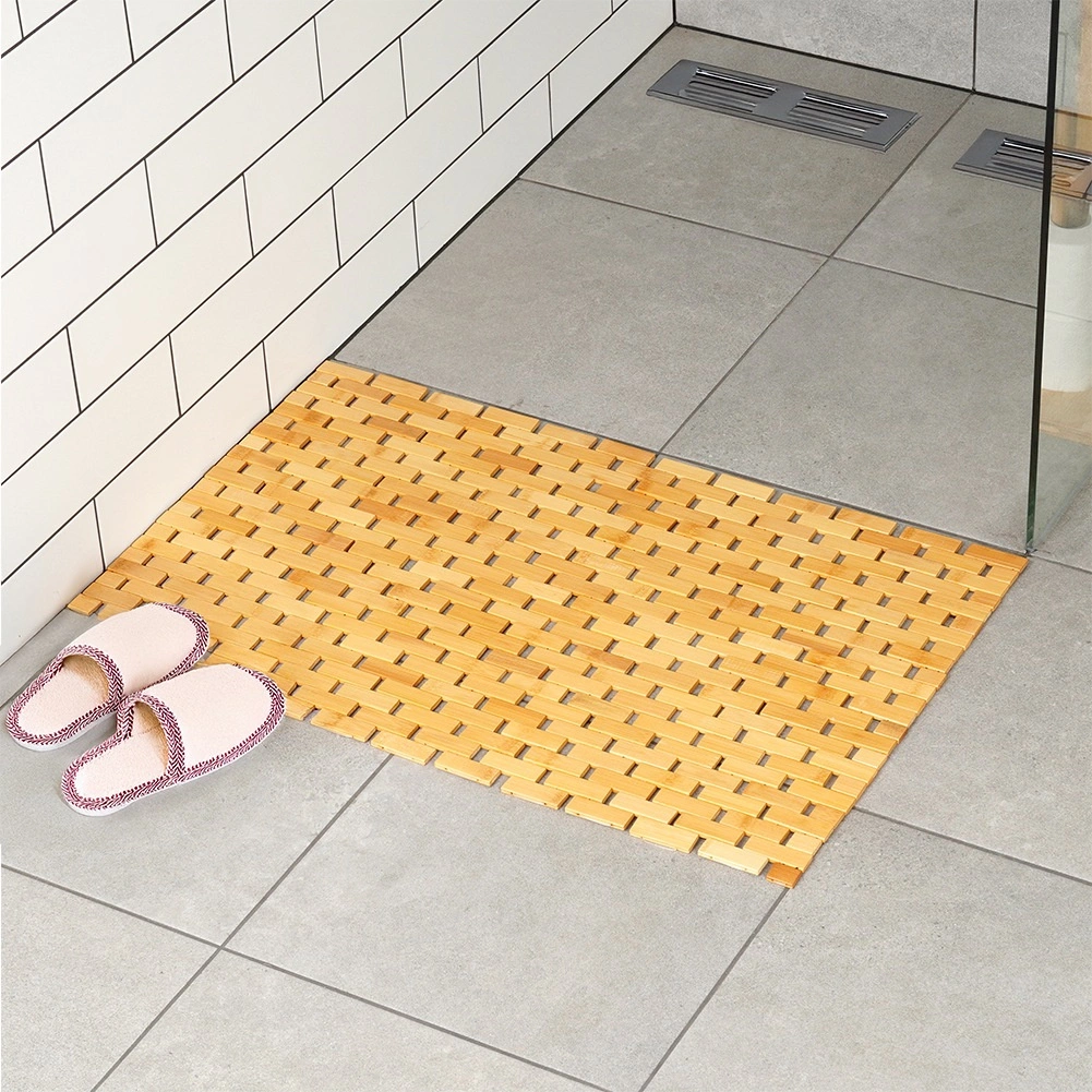 Elegantná bambusová kúpeľňová podložka s rozmermi 80 × 50 cm vnesie do vašej kúpeľne pocit SPA a bezpečia. Vďaka prírodnému bambusu je odolná voči vlhkosti, rýchloschnúca a s protišmykovou stabilitou vďaka penovým podložkám na spodnej strane. Skvele funguje pri vani, sprche, v saune aj vo wellness zóne a zároveň chráni chodidlá pred studenou podlahou.