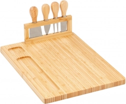 Táto elegantná 5-dielna sada kombinuje prírodnú bambusovú dosku s drážkou na sušienky či oriešky a praktický držiak na nástroje. Nehrdzavejúce čepele a drevené rukoväte zabezpečujú pohodlné a presné krájanie tvrdých, polotvrdých aj mäkkých syrov. Sada je skvelým darčekom a ozdobou každého stola.