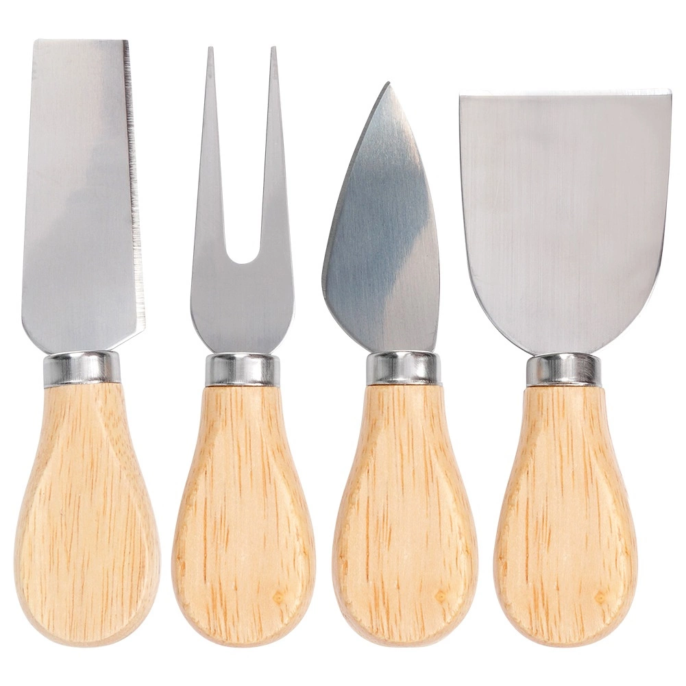 Kompletná sada s dvoma nožmi, špachtľou a vidličkou na krájanie, porciovanie a podávanie rôznych druhov syrov.
