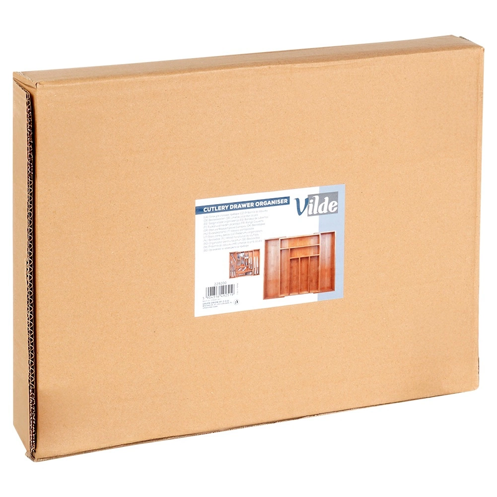 Praktický bambusový organizér do zásuvky s rozťahovateľnou šírkou 35,5–54,5 cm udrží príbory, nože a kuchynské náradie perfektne usporiadané. Vďaka 7 premysleným priehradkám ponúkne prehľadné rozdelenie a jednoduchý prístup. Vyrobený z odolného bambusového dreva, ktoré je pevné, elegantné a ľahko sa čistí. Originálny produkt značky VILDE.