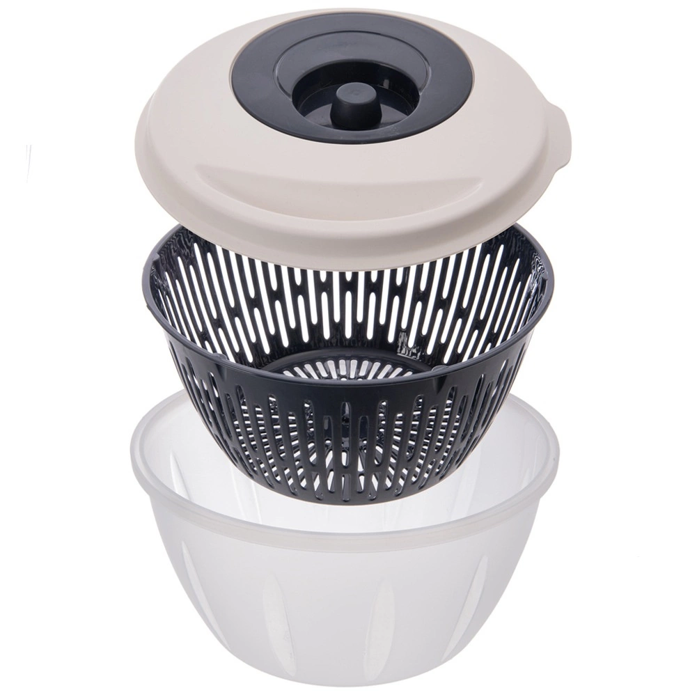 Všestranné využitie oceníte aj mimo šalát – vyberateľný kôš funguje ako cedník, misa ako servírovacia nádoba. Všetky časti možno ľahko rozobrať a umyť, misa je vhodná aj do umývačky a mikrovlnnej rúry, odolná do +95 °C. Kvalitné prevedenie v kombinácii transparentnej misy, sivého koša a bielej pokrievky sa skvele hodí do každej kuchyne.