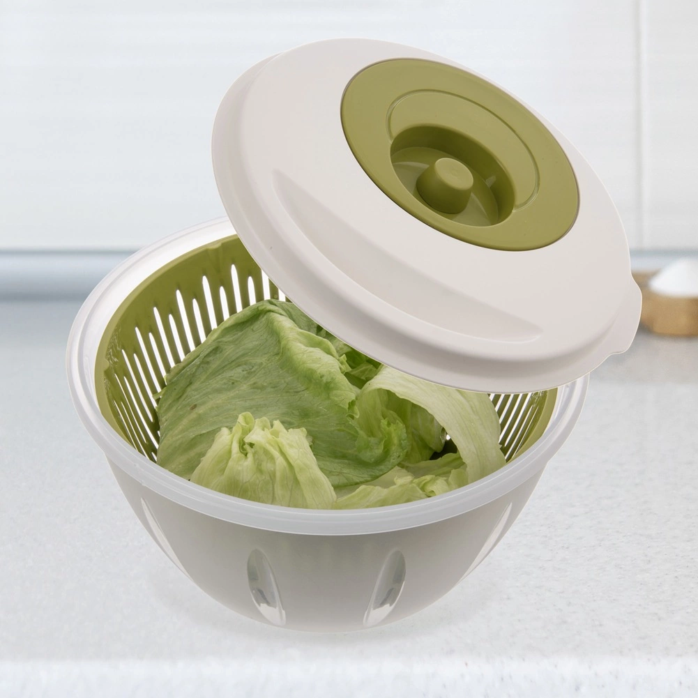 Ručný otočný mechanizmus vo veku roztočí vnútorný kôš a počas pár sekúnd odstráni prebytočnú vodu z listov pre dokonale chrumkavé šaláty.