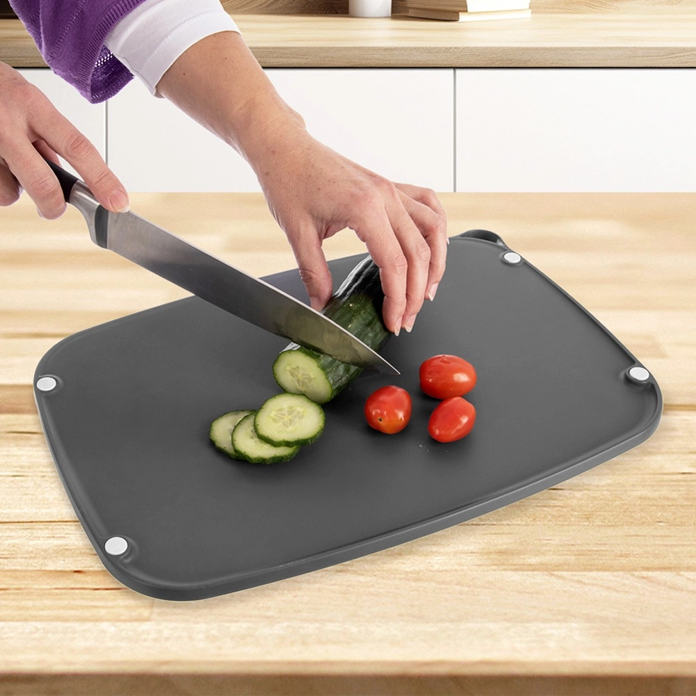 Doska je vyrobená z odolného, pre potraviny bezpečného plastu v elegantnej sivej farbe. Ľahko sa udržiava – možno ju umývať v umývačke a znesie teploty až +95 °C. Praktický otvor uľahčuje zavesenie a úsporné skladovanie.