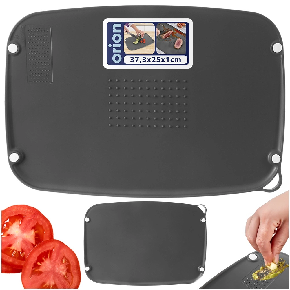 Praktická, hygienická a obojstranná krájacia doska ELA s rozmermi 37,5 × 25 × 1 cm. Jedna strana je hladká, druhá ponúka kolíky na fixáciu potravín a jemné výstupky na strúhanie (napr. cesnaku). Špeciálne profilovanie zabezpečuje odvod štiav jedným smerom, takže pracovná plocha zostáva čistá. Vyrobené z kvalitného, odolného plastu vhodného do umývačky, tepelne odolného do +95 °C. Vybavené otvorom na zavesenie. Overená kvalita značky ORION.