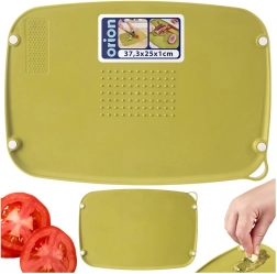 Praktická a hygienická krájacia doska na každodenné používanie. Ponúka obojstranné prevedenie, protišmykové výstupky, stredové kolíčky na fixáciu potravín a jednoduchý odvod štiav jedným smerom. Je vhodná do umývačky, odolná do +95 °C a má otvor na zavesenie. Overená kvalita značky ORION.