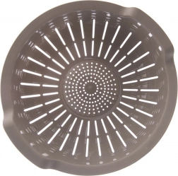 Cedník sa ukladá do misky, šetrí miesto. Široké okraje a úchyty zabezpečujú istý úchop a stabilitu pri cezení.