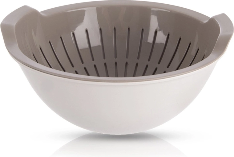 Praktická sada cedník + miska 2v1 s objemom 3 l uľahčí oplachovanie a cezenie ovocia, zeleniny aj cestovín. Vnútorný cedník možno vybrať, prepláchnuť suroviny a vrátiť späť do misky, kde prebytočná voda voľne odtečie. Vyrobené z kvalitného plastu bez BPA, vhodné do umývačky riadu a miska aj do mikrovlnnej rúry (do +95 °C).