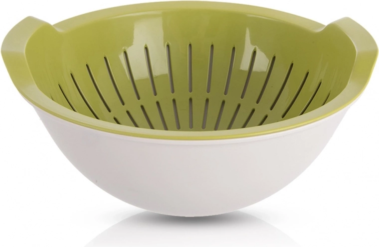 Praktická sada cedník + misa 2v1 na rýchle oplachovanie a cedenie ovocia, zeleniny či cestovín. Vnútorný vyberateľný cedník pohodlne odkvapkáva do stabilnej misy, obe časti sú z kvalitného plastu bez BPA, vhodné do umývačky a misa aj do mikrovlnky. Úsporné vkladacie riešenie šetrí miesto v kuchyni.