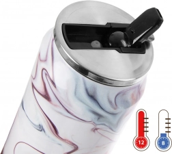 Štýlový termohrnček v tvare plechovky s objemom 500 ml udrží vaše nápoje horúce až 12 hodín a studené až 8 hodín. Vďaka dvojstennej vákuovej izolácii, nehrdzavejúcej oceli a tesniacemu viečku s výklopným náustkom je ideálny na cesty, do práce aj do školy. Pastelový mramorový dizajn a slim prevedenie sa ľahko zmestí do držiaka nápojov.