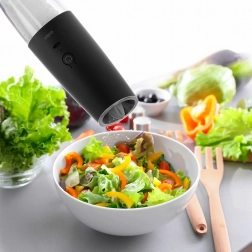 Užite si čerstvo namleté koreniny jediným pohybom ruky. Elektrický mlynček s nabíjateľným akumulátorom sa spustí automaticky po otočení dnom nahor a vďaka keramickému mechanizmu si poradí aj s tvrdšími zrnami. Priehľadný zásobník umožní jednoduchú kontrolu množstva a elegantné čierne prevedenie skvele zapadne na kuchynskú linku aj stôl.