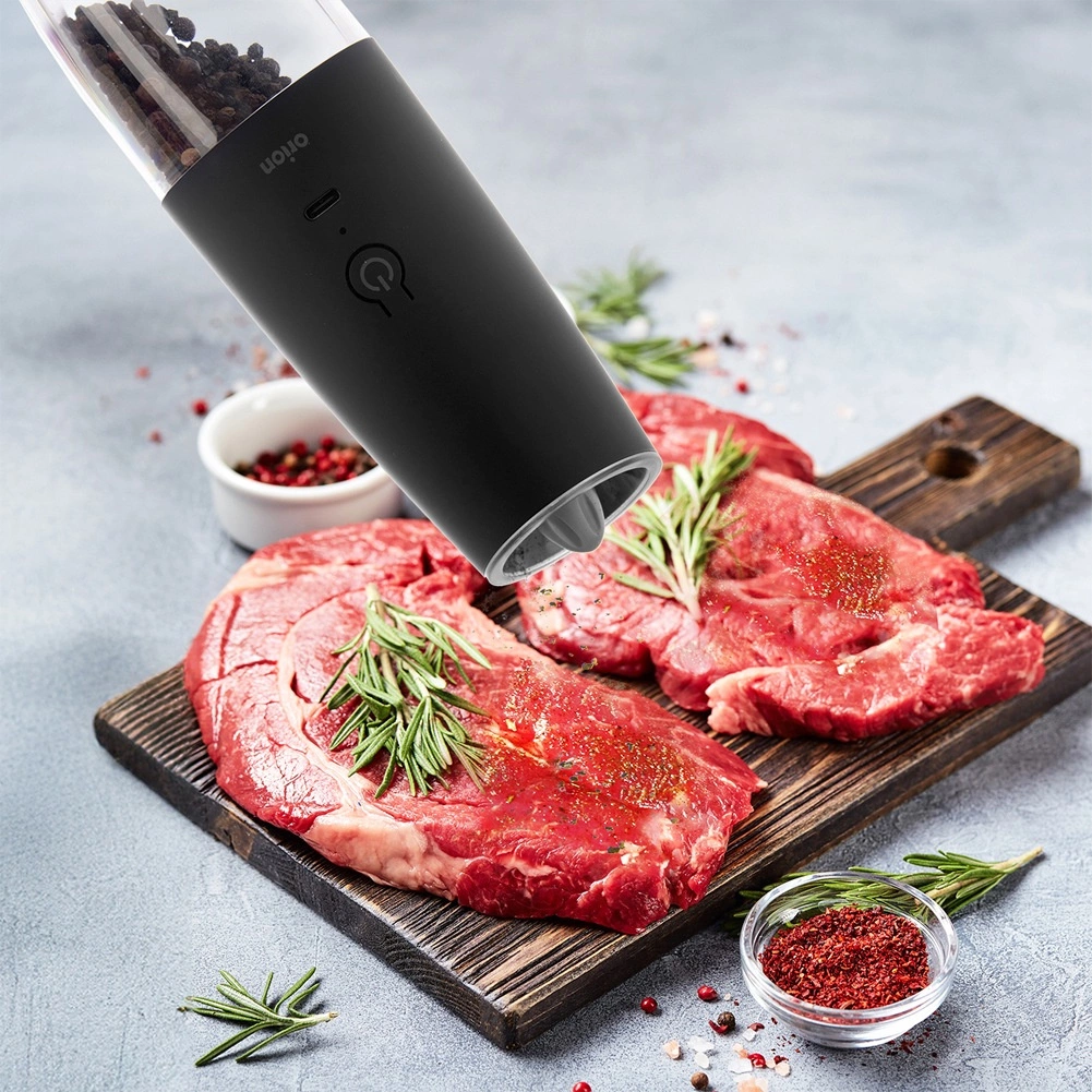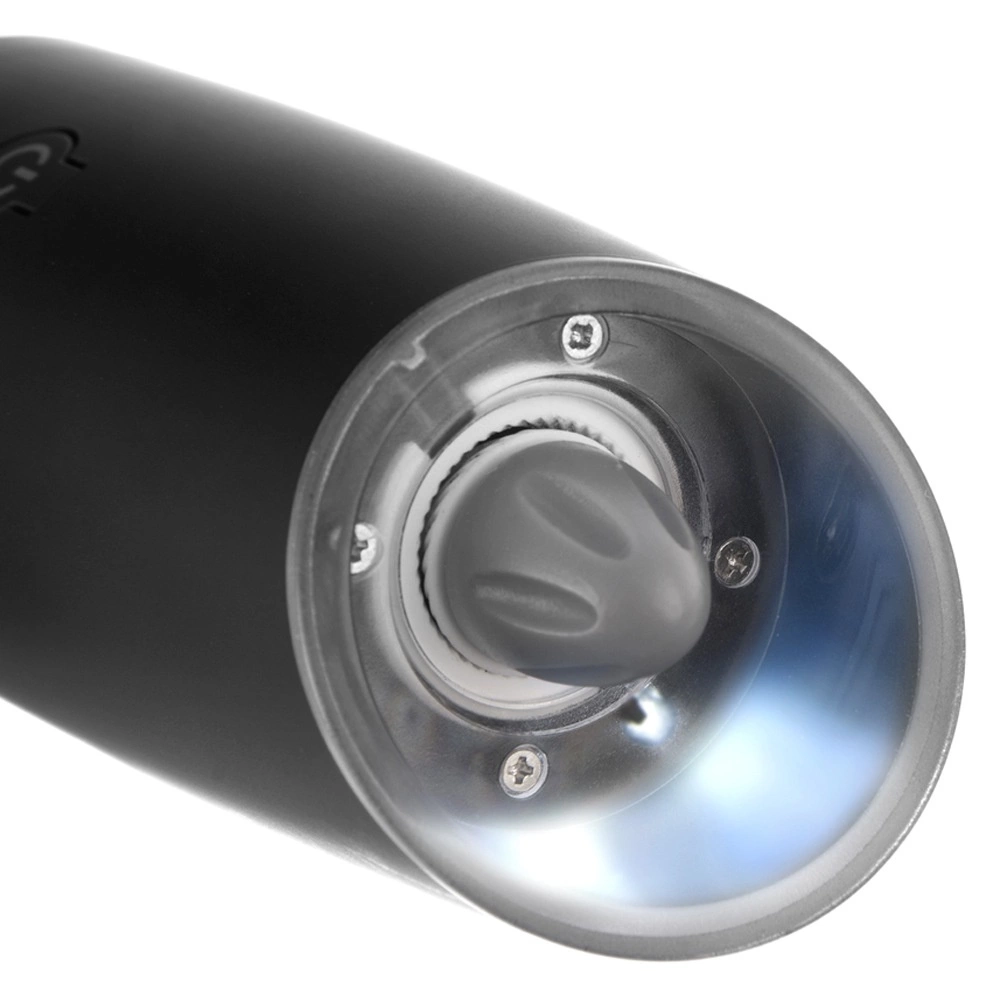 Integrované LED svetlo a automatické spustenie po otočení uľahčia presné dochutenie priamo na tanieri či panvici jednou rukou.