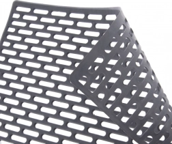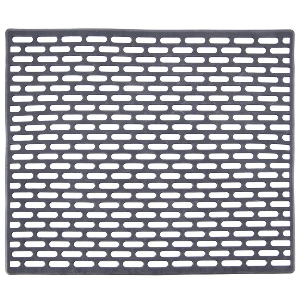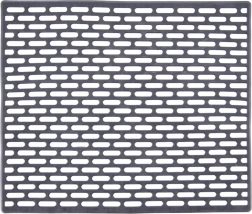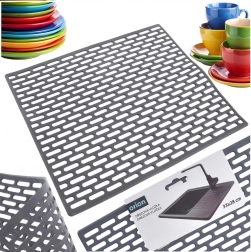 Premyslená perforovaná štruktúra umožňuje voľný prietok vody a bráni jej hromadeniu. Podložka je ľahko umývateľná, flexibilná a výborne priľne k povrchu. Jej kompaktný rozmer 33 × 28 cm a neutrálne prevedenie sa hodí do moderných aj klasických kuchýň.