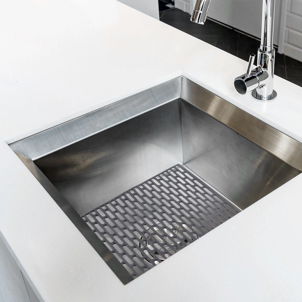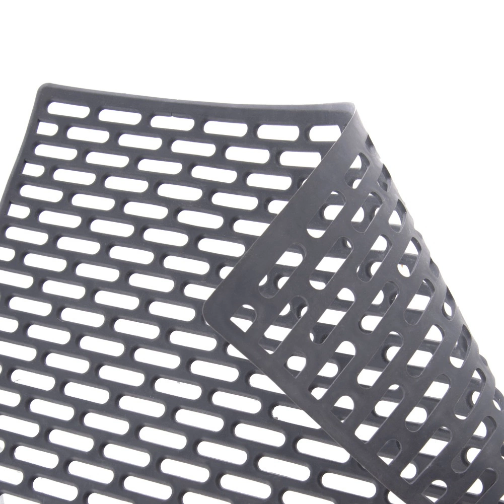 Praktická gumová podložka do drezu s rozmermi 33 × 28 × 0,1 cm spoľahlivo chráni dno pred poškriabaním a nárazmi. Vďaka perforácii zabezpečuje plynulý odtok vody, je protišmyková a odolná voči vlhkosti. Univerzálna sivá farba sa hodí do väčšiny kuchýň a podložka je vhodná pre rôzne typy drezov.