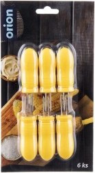 Užite si kukuricu na klasu bez špinavých rúk a popálených prstov. Táto sada šiestich držiakov ponúka pevný úchop vďaka rebrovaným žltým rukovätiam a ostrým dvom nerezovým hrotom na každom kuse. Jednoducho ich zapichnete do oboch koncov klasu a môžete podávať aj jesť s maximálnym komfortom.