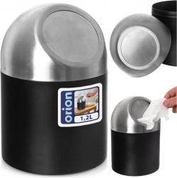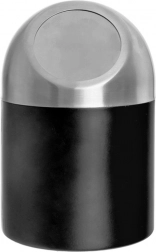 Kompaktný odpadkový kôš s objemom 1,2 l s výklopným vekom kombinuje nehrdzavejúcu oceľ a matné čierne telo pre štýlový vzhľad v kúpeľni, na toaletnom stolíku či pracovnom stole. Ľahké odhadzovanie jednou rukou, obmedzenie zápachu a rýchle čistenie vďaka hladkému povrchu.