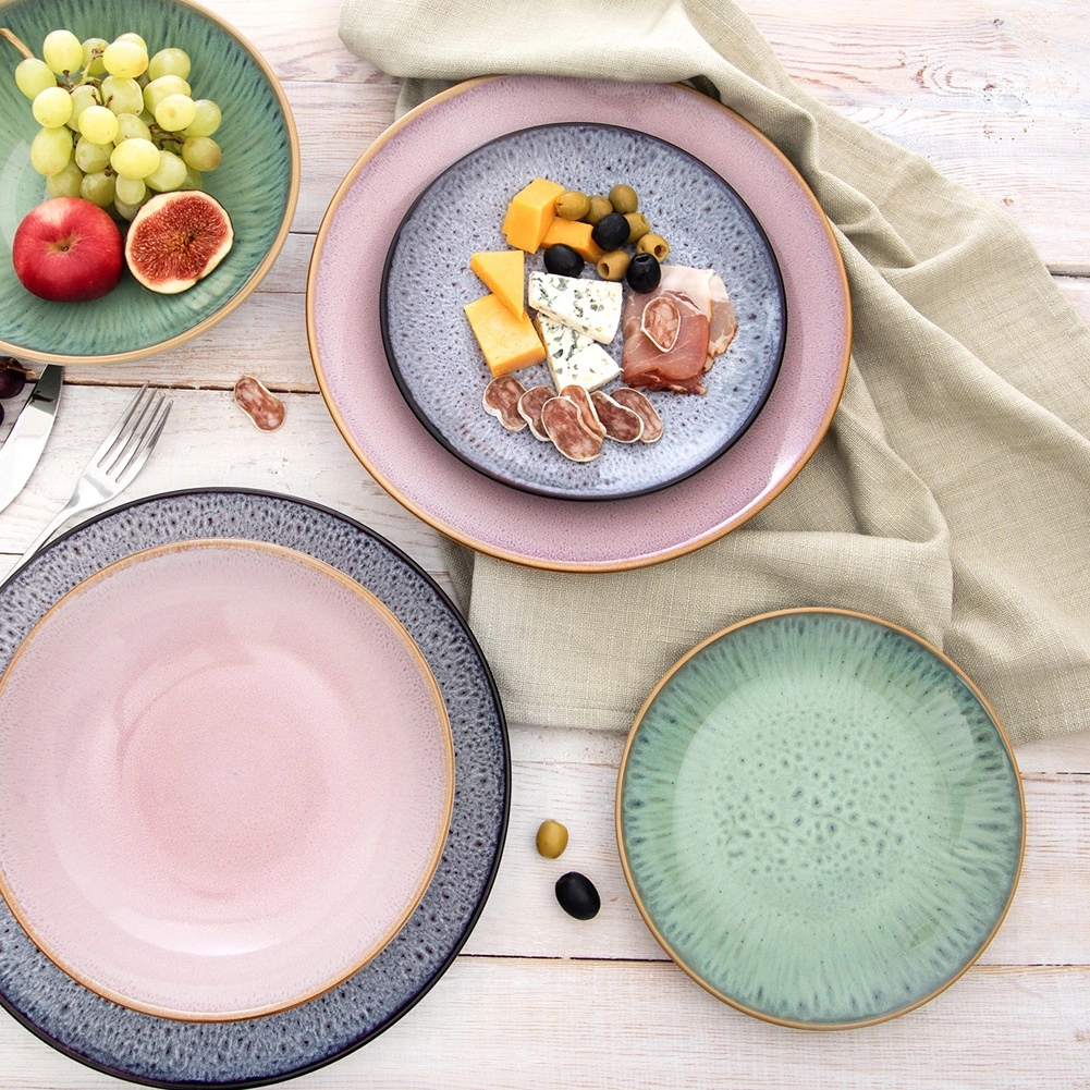 Štýlový keramický dezertný tanier 20,5 cm z kolekcie Glaze dodá vášmu stolovaniu moderný nádych. Zelená glazúra s jemným, efektným škvrnením a kontrastným lemom pôsobí elegantne a ľahko sa kombinuje s ďalšími kúskami riadu.