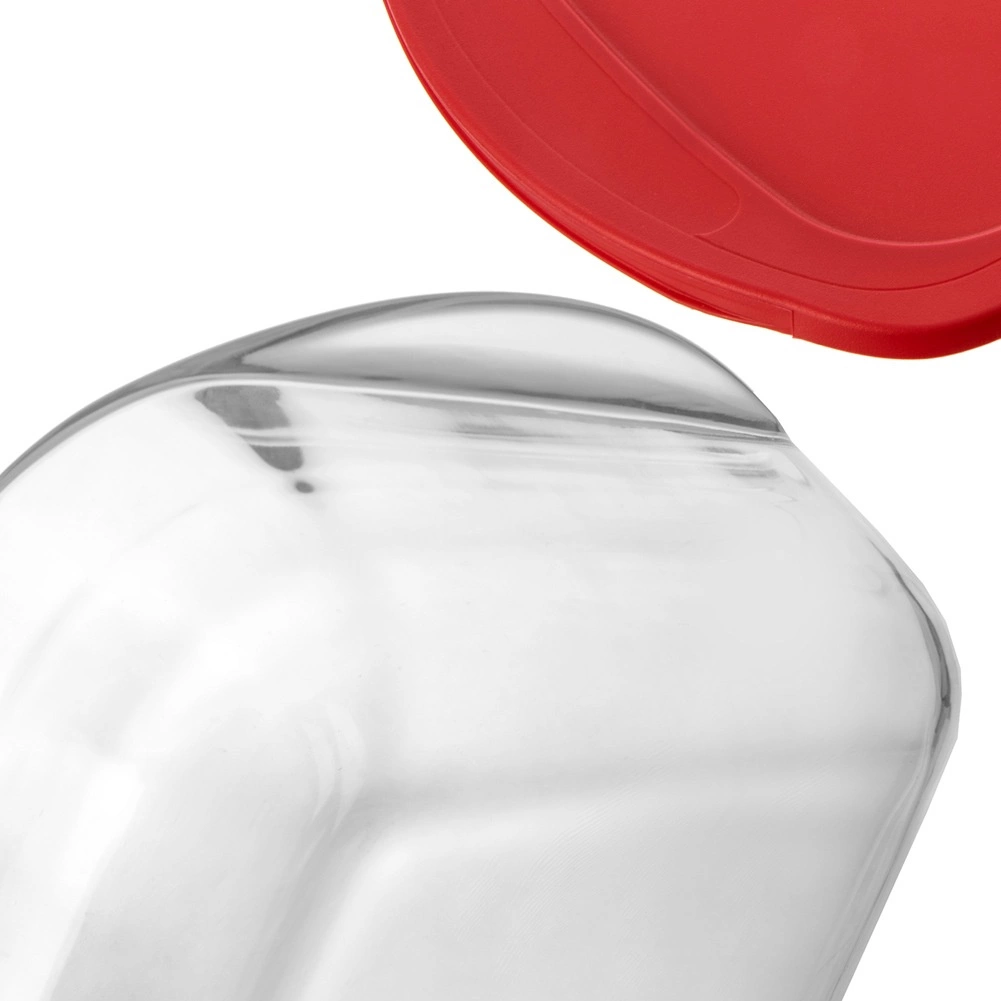 Červené plastové veko chráni pokrmy pred vysychaním, uľahčuje prenášanie a umožňuje skladovanie bez rozliatia.