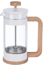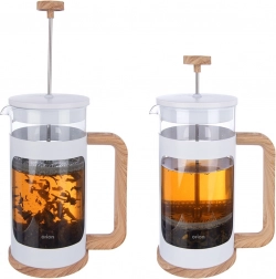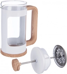 Elegantný sklenený french press s objemom 400 ml na prípravu kávy, čaju aj bylinkových nálevov. Kombinuje borosilikátové sklo s prvkami v dekore dreva a bielym rámom. Disponuje jemným nerezovým sitkom pre čistý nápoj bez usadeniny, ergonomickým uchom a presným výlevom pre pohodlné servírovanie. Sklenená nádoba je vhodná do umývačky riadu. Overená kvalita značky ORION.