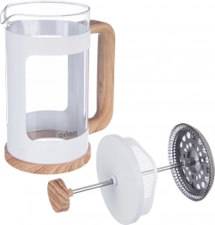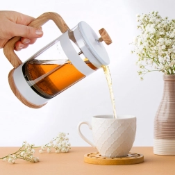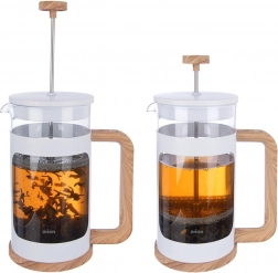 Biely plášť s detailmi v dekore dreva, ergonomické madlo a čisté línie z neho robia štýlový doplnok pre domácnosť aj kaviareň.