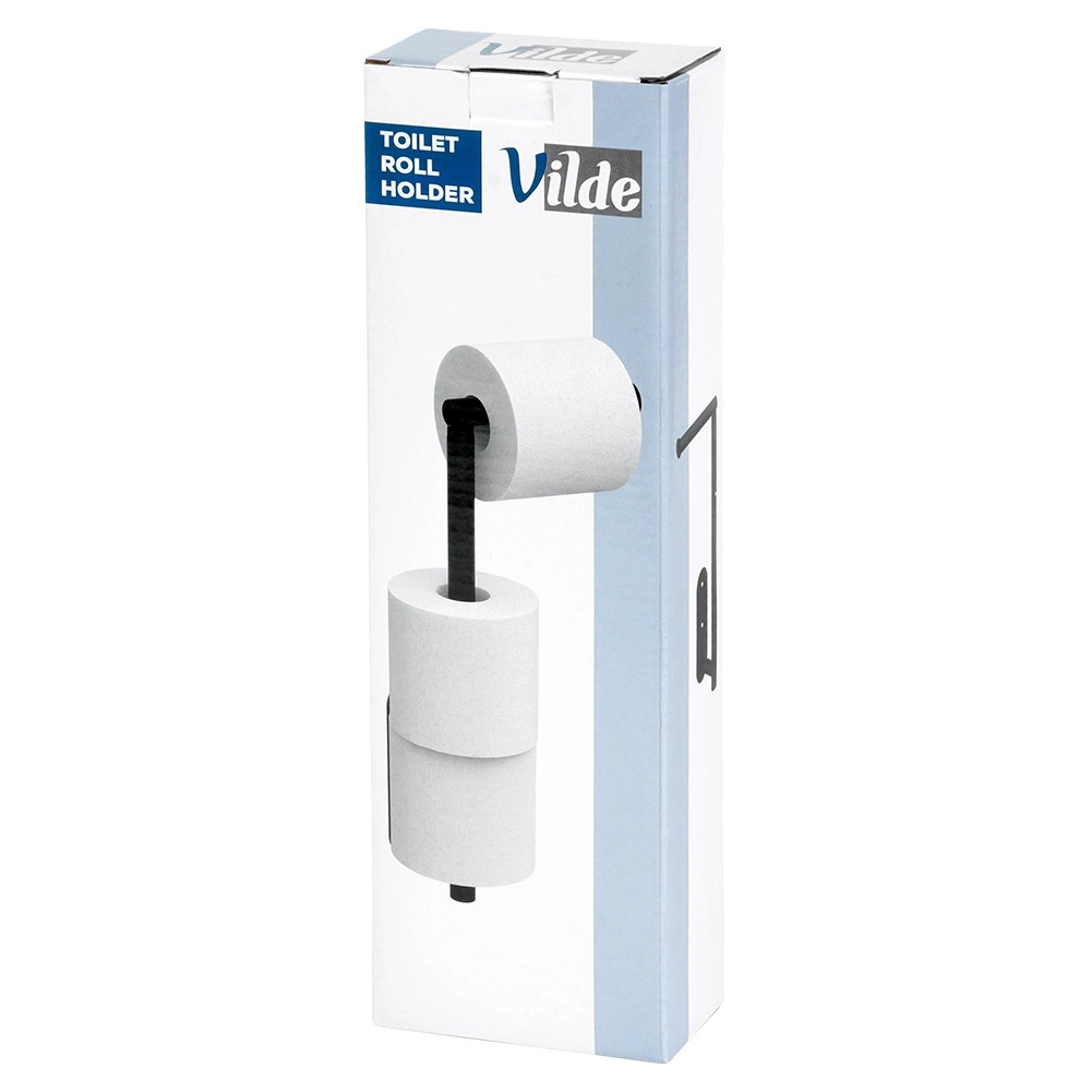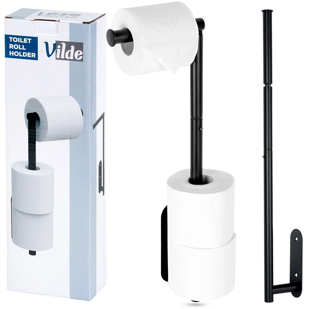 Tento viacúčelový držiak toaletného papiera z nehrdzavejúcej ocele v matnom čiernom prevedení kombinuje podávač a zásobník v jednom. Štandardne pojme 1 rolu na okamžité použitie + 4 náhradné (celková výška 46,5 cm). Vďaka otočnému hornému ramenu ho možno nastaviť aj na čisto vertikálny zásobník s kapacitou až 5 rolí a výškou cca 60 cm.