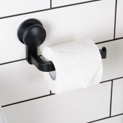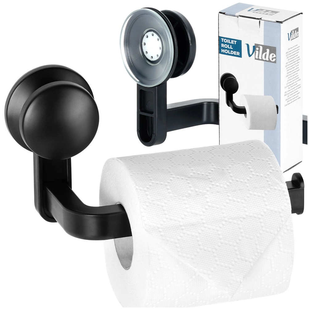 Praktický držiak na toaletný papier s prísavkou v elegantnej čiernej farbe pre jednoduchú montáž bez vŕtania. Ponúka rýchlu inštaláciu, stabilné uchytenie na hladkých plochách a pohodlnú výmenu roliek. Ideálny doplnok do modernej kúpeľne s nadčasovým dizajnom a odolným vyhotovením.