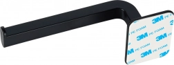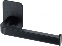 Elegantný držiak na toaletný papier v čiernej farbe s samolepiacou montážou 3M bez vŕtania. Kompaktné rozmery 16,5 × 7 × 6,5 cm, moderný minimalistický dizajn, jednoduchá výmena rolky a spoľahlivé upevnenie na hladké povrchy.