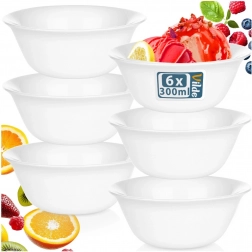 Sada 6 bielych misiek z kvalitného opálového skla kombinuje elegantný vzhľad pripomínajúci porcelán s praktickou odolnosťou na každodenné používanie. Každá miska má objem 300 ml a rozmery približne 13 × 13 × 5 cm, takže je perfektná na servírovanie drobných pochúťok, dezertov či polievok.
