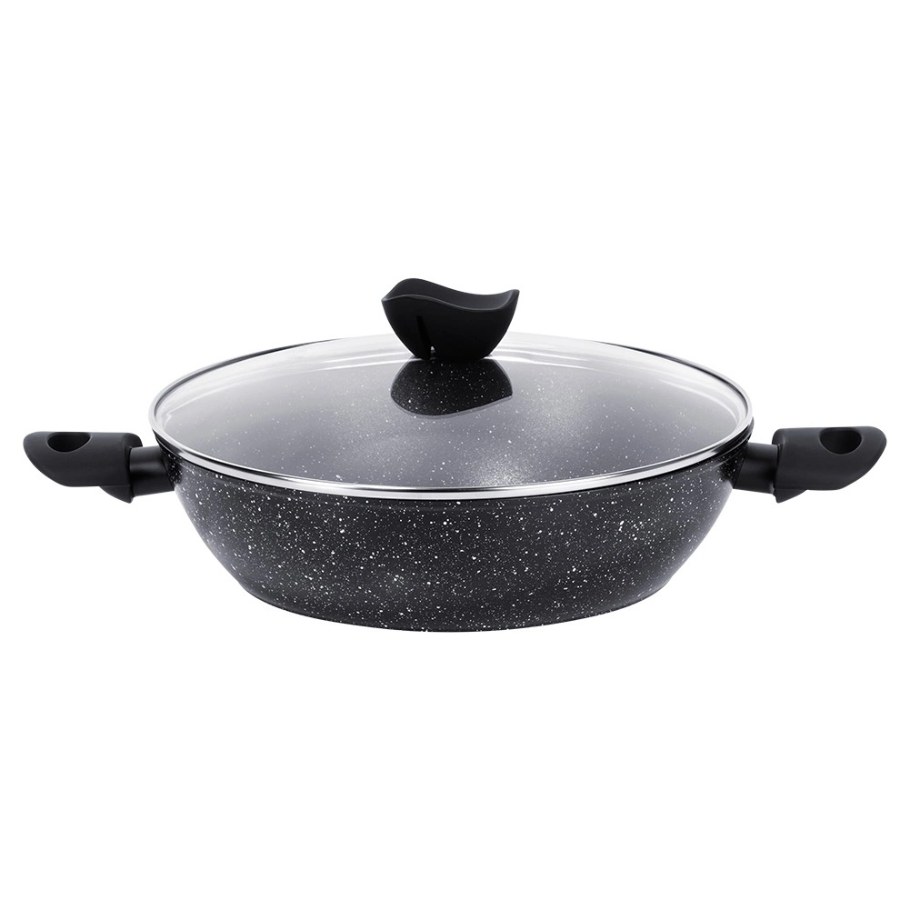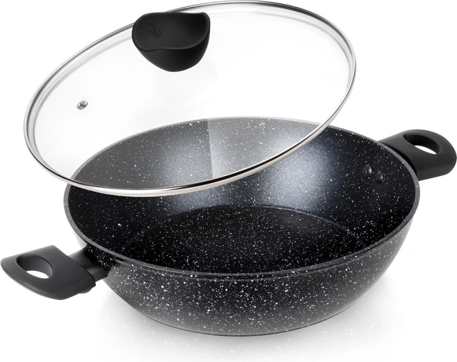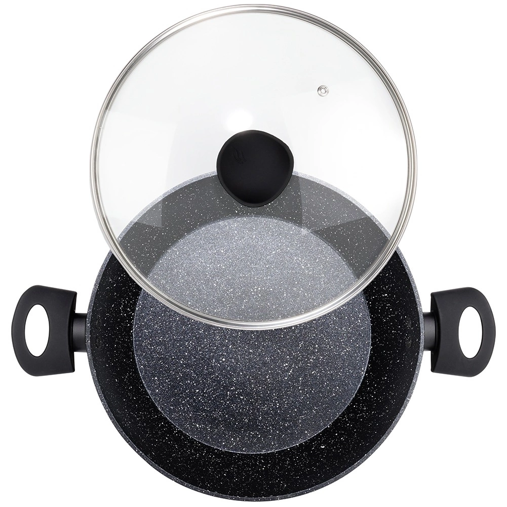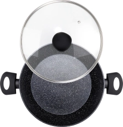 Hlboká granitová panvica so sklenenou pokrievkou BLACK LINE 28 cm, 3,5 l