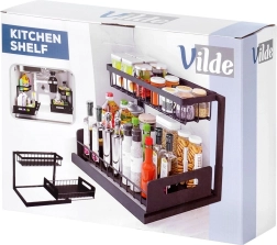 Táto dvojposchodová polička s rozmermi 36 × 27 × 28,5 cm ponúka šikovné usporiadanie korenín, dochucovadiel aj menších pohárov. Dolný kôš je výsuvný, takže máte o všetkom okamžitý prehľad a ľahký dosah. Medzera medzi policami 21 cm umožní uloženie aj vyšších mlynčekov alebo fliaš.