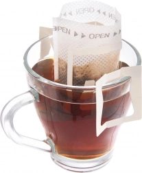 - Rýchla príprava: zavesiť na hrnček, nasypať kávu/čaj, zaliať horúcou vodou.