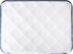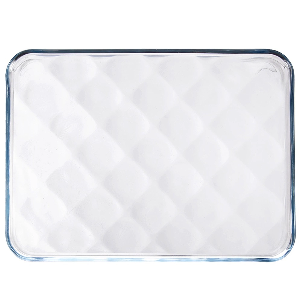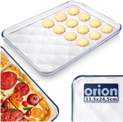 Univerzálna sklenená misa z borosilikátového skla s rozmermi 33,5 × 24,5 × 2 cm na pečenie, ohrievanie aj servírovanie. Vďaka jemnému reliéfu dna je elegantná a praktická – zabezpečuje lepšiu cirkuláciu vzduchu a obmedzuje pripálenie. Vhodná do rúry, mikrovlnky, umývačky aj mrazničky (−40 °C až +300 °C).