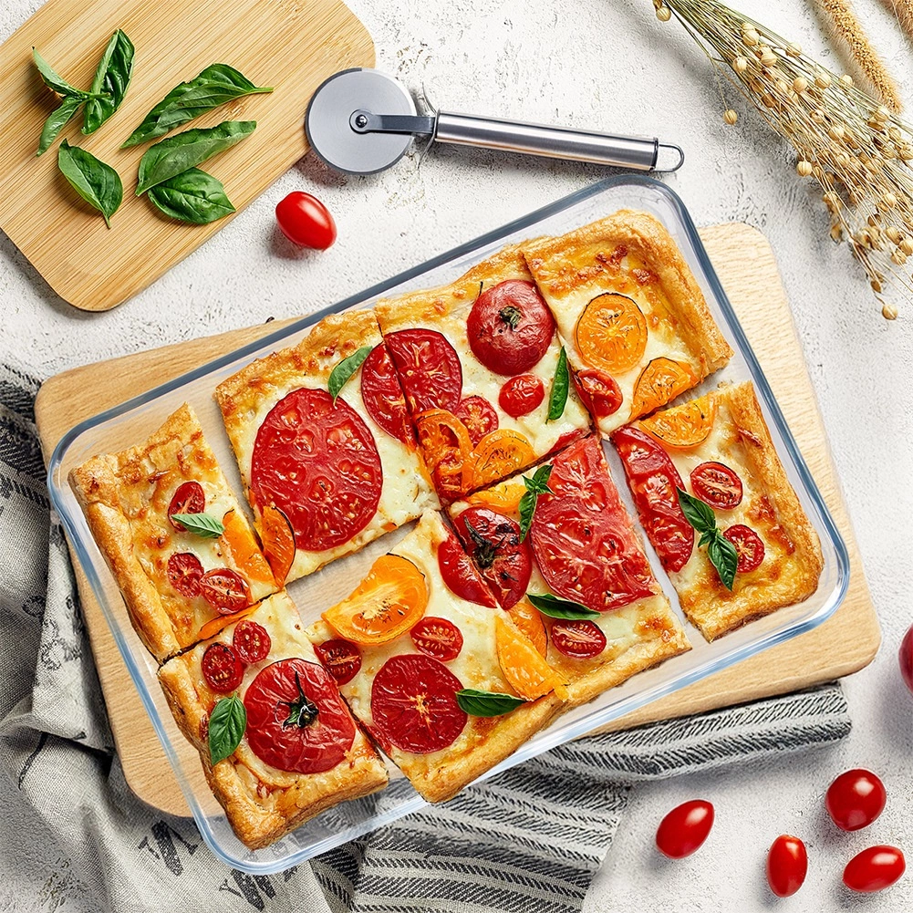 Táto nízka sklenená misa je ideálna na prípravu sušienok, dezertov, zeleniny aj mäsa. Transparentné borosilikátové sklo umožní pohodlnú kontrolu pečenia a zároveň je dostatočne odolné na každodenné používanie. Štýlový vzhľad sa skvele hodí aj na priame servírovanie na stôl.