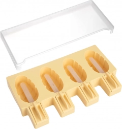 Táto praktická silikónová forma v jemne žltej farbe je ideálna na každodennú prípravu domácich nanukov a mrazených dezertov. Pripravíte v nej štyri porcie naraz a vďaka priehľadnému viečku môžete formy bezpečne stohovať a čisto prenášať do mrazničky bez rozliatia.