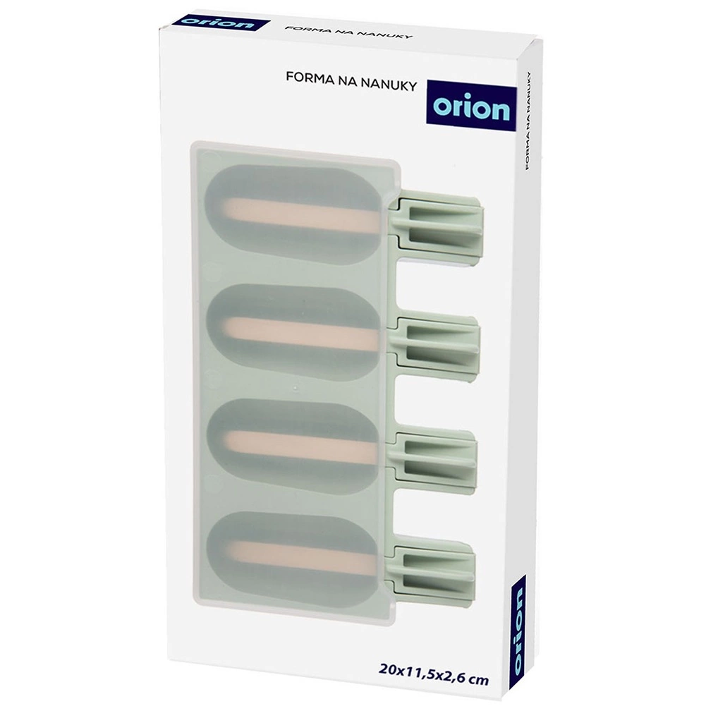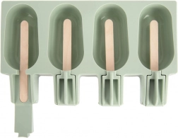 Forma je vyrobená z kvalitného silikónu v pastelovo zelenej farbe, viečko je priehľadné. Je vhodná do umývačky, mrazničky aj mikrovlnky a odolá teplotám od -20 °C do +120 °C. Súčasťou balenia je 24 ks drevených tyčiniek. Rozmer celej formy je 20 × 11,5 × 2,6 cm, veľkosť jedného nanuku cca 7 × 4 cm.