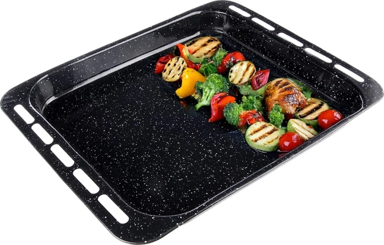 Tento univerzálny plech na pečenie je skvelou voľbou na sladké aj slané recepty. Smaltovaný povrch zabezpečuje rovnomerné rozloženie tepla, minimálnu priľnavosť a dlhú životnosť. Vďaka zvýšenému okraju sa výborne hodí na zapekanie, pečenie mäsa, zeleniny, koláčov aj buchiet.