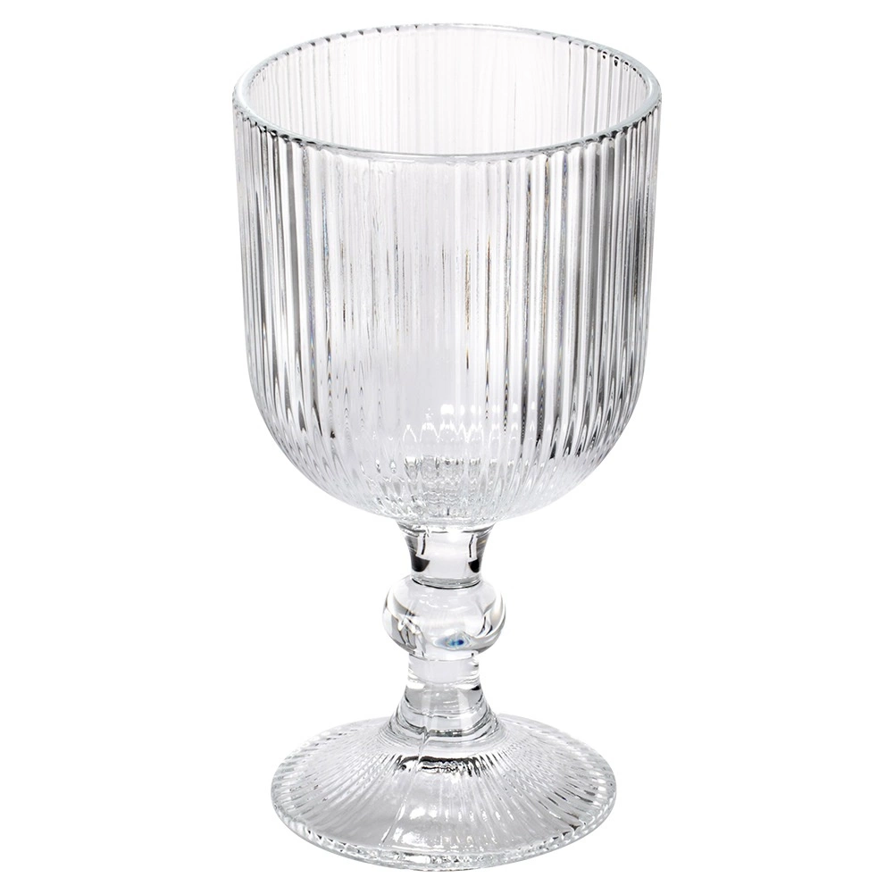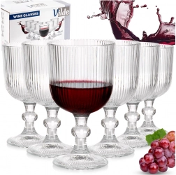 Elegantná sada 6 sklenených pohárov s objemom 340 ml je ideálna na podávanie bieleho aj červeného vína, vody, limonád či dezertov. Poháre z kvalitného, hrubostenného skla majú výrazné ryhované vyhotovenie, stabilnú širokú pätu a pohodlne tvarovanú stopku pre istý úchop. Vďaka nadčasovému dizajnu sa hodia na všedné dni aj slávnostné príležitosti a možno ich umývať v umývačke.
