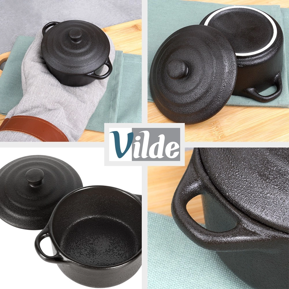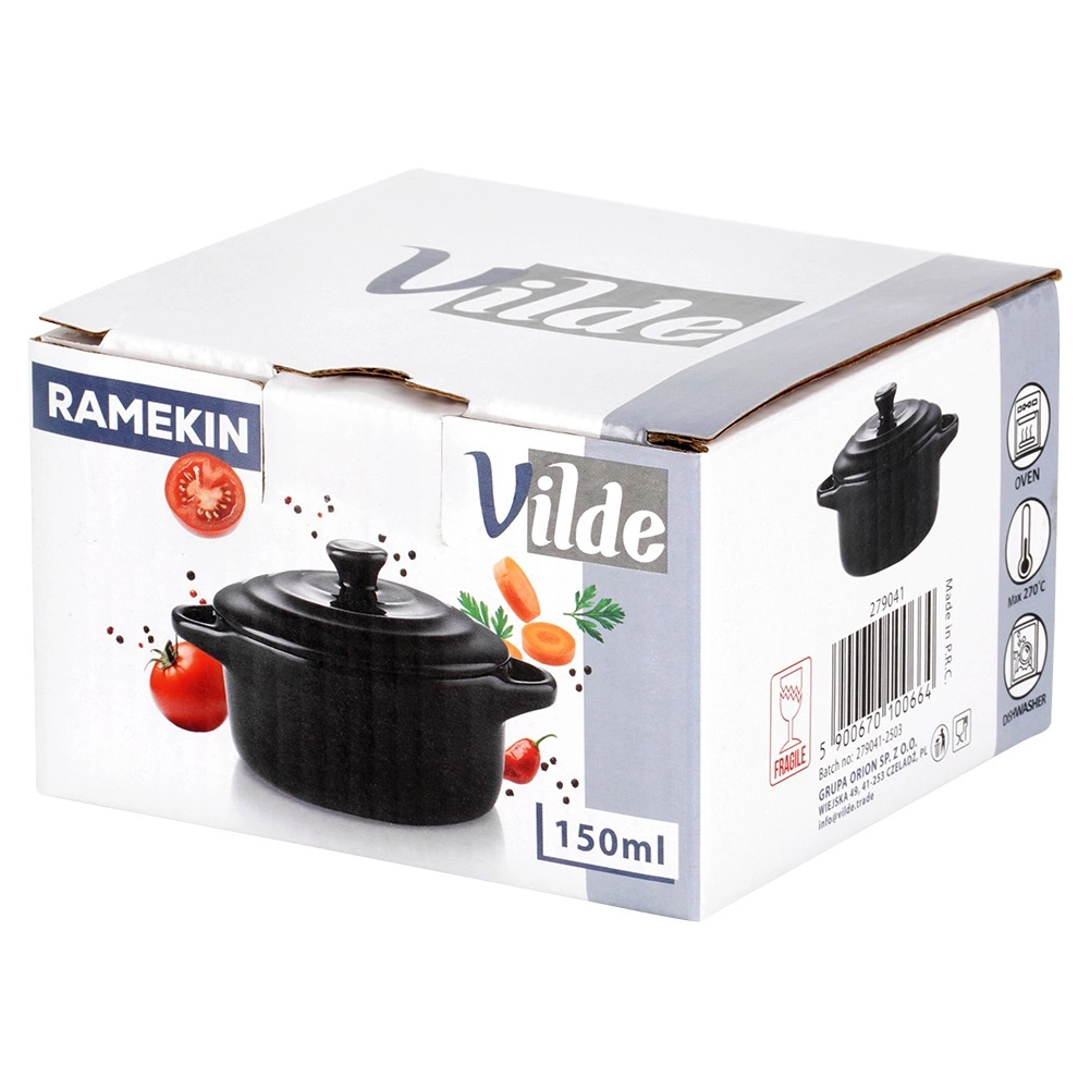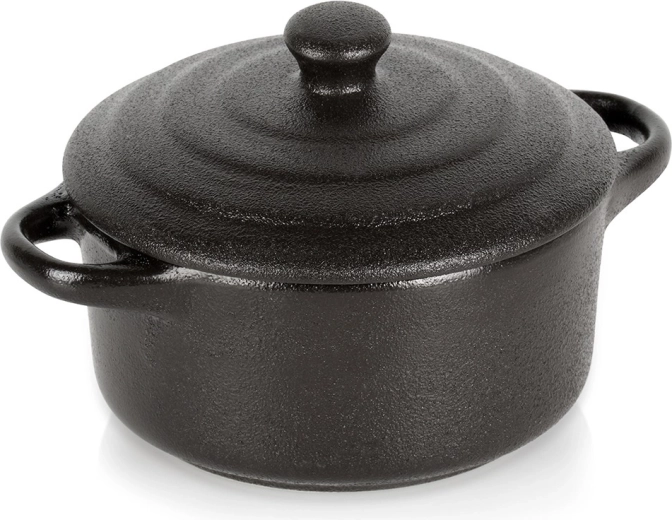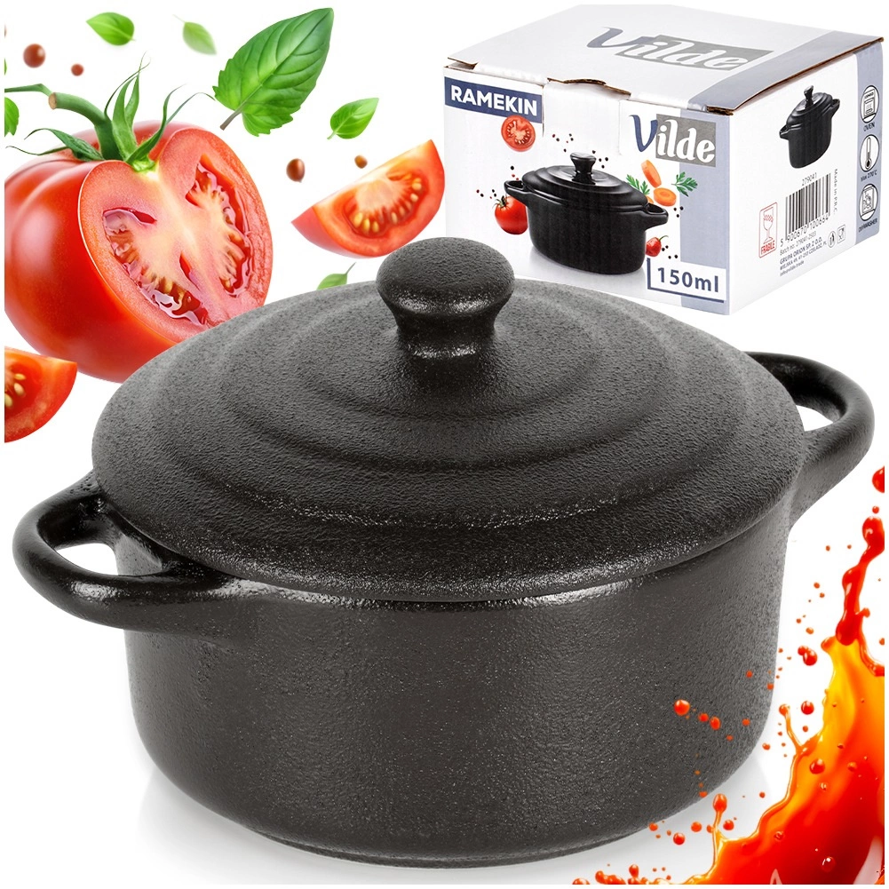 Táto štýlová porcelánová kokotka s vekom umožní piecť, zapekať aj servírovať v jednej nádobe. Skvelo sa hodí na jednotlivé porcie – od zapekaných vajec, mini zapekaných jedál, dezertov až po tapas. Čierne prevedenie pôsobí elegantne na každom stole a podporí atraktívne servírovanie.