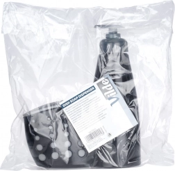 Set obsahuje dávkovač aj košík v jednotnom dizajne – stačí naplniť umývacím prostriedkom a začať používať.