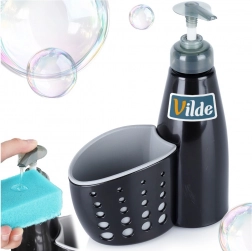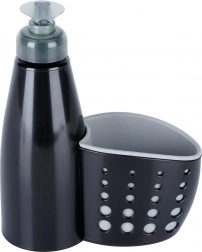Elegantný dávkovač na riad kombinuje nádobku na tekutý prostriedok s praktickým košíkom na hubku či kefku. Vďaka odtokovým otvorom zostávajú pomôcky suché a vždy po ruke. Minimalistický dizajn v čiernej farbe skvelo ladí s modernými, klasickými aj industriálnymi interiérmi.