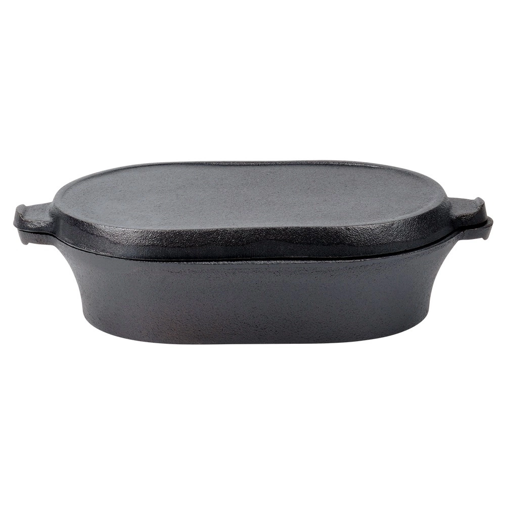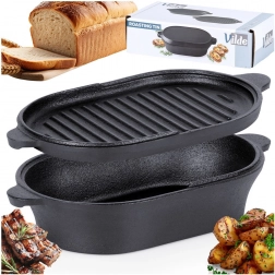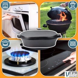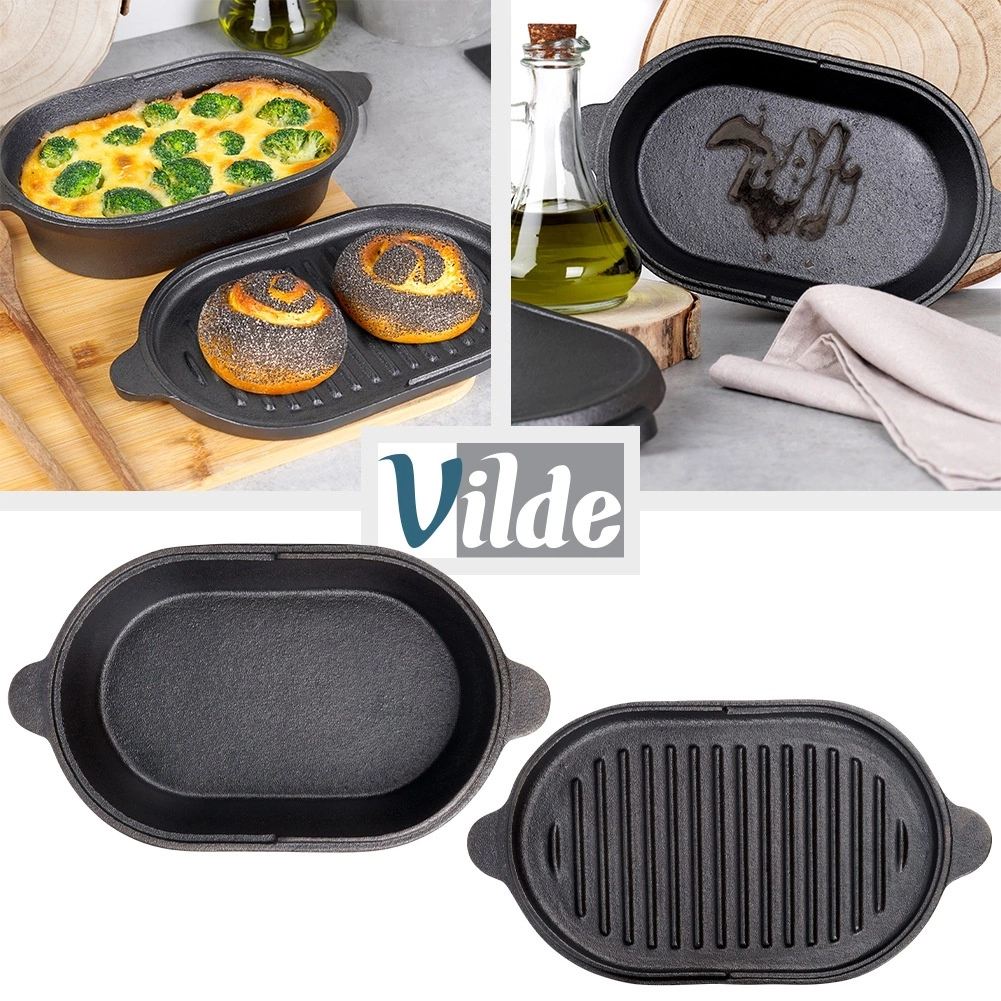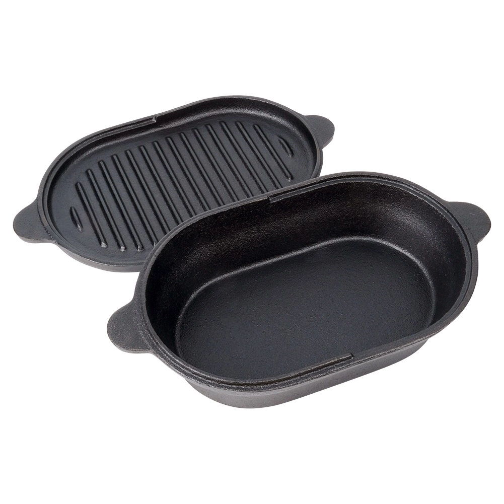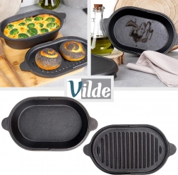 Táto oválna liatinová rajnica s praktickým vekom 2v1 je navrhnutá na každodenné aj sviatočné varenie. Spodná časť poslúži ako hlbší pekáč na mäso, zemiaky či zeleninu, zatiaľ čo veko s ryhovaným dnom funguje ako samostatná grilovacia panvica pre dokonalé opečenie a mriežkovanie.