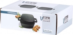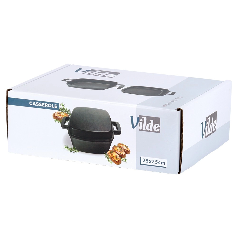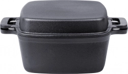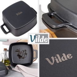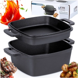 Univerzálny štvorcový liatinový hrniec 2v1 s pokrievkou, ktorá slúži aj ako samostatná panvica/zapekacia misa. Masívna liatina výborne vedie a akumuluje teplo, je odolná voči vysokým teplotám a vhodná na všetky typy sporákov vrátane indukcie, do rúry, na gril aj nad oheň. Ideálny na dusené jedlá, pečenie, varenie polievok, gulášov a zapekaných pokrmov. Originálny produkt VILDE z línie CAST LINE.