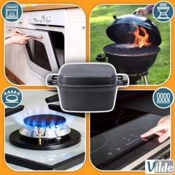 Vhodné na plyn, elektrinu, keramiku, halogén, indukciu aj do rúry. Ideálne tiež na gril a otvorený oheň.